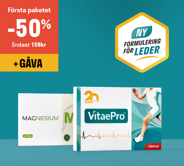 Ta hand om dina muskler och leder med VitaePro - prova ett av Nordens mest sålda kosttilskott idag.